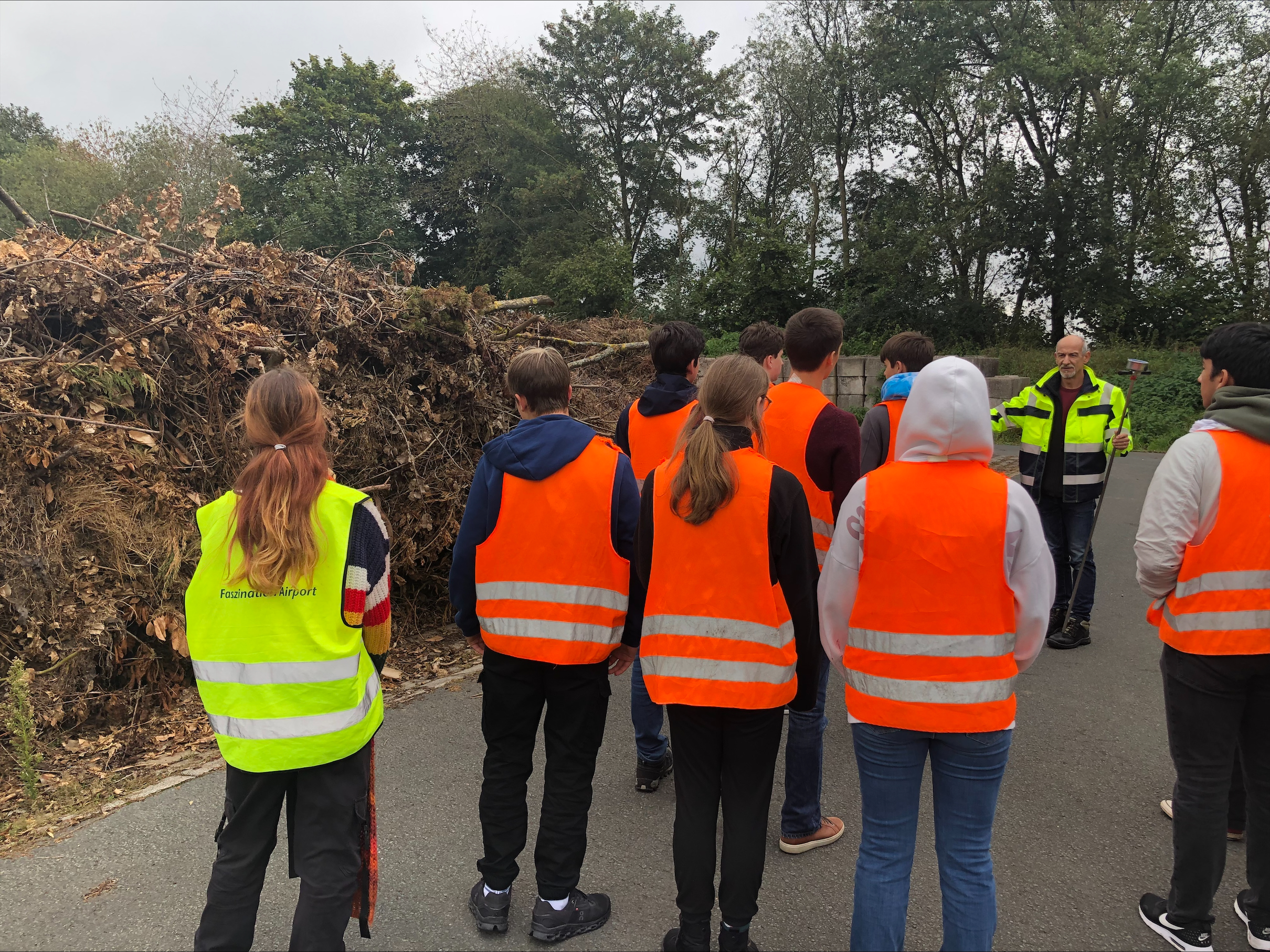 Zu Beginn der Führung wurden wir von den Mitarbeitern des Wertstoffhofs empfangen und erhielten eine Sicherheitsbelehrung, sowie Warnwesten. Sie erklärten uns die grundlegenden Abläufe und die verschiedenen Bereiche des Hofes. Besonders spannend war der Abschnitt, in dem wir mehr über die Zersetzung von Grünschnitt erfuhren. Der Grünschnitt, der aus Gartenabfällen wie Ästen, Laub und Schnittblumenbesteht, wird in speziellen Kompostieranlagen verarbeitet. Hierbei lernten wir, wie wichtig die richtige Zersetzung ist, um wertvollen Kompost zu erzeugen, der später als Dünger in der Landwirtschaft eingesetzt werden kann.