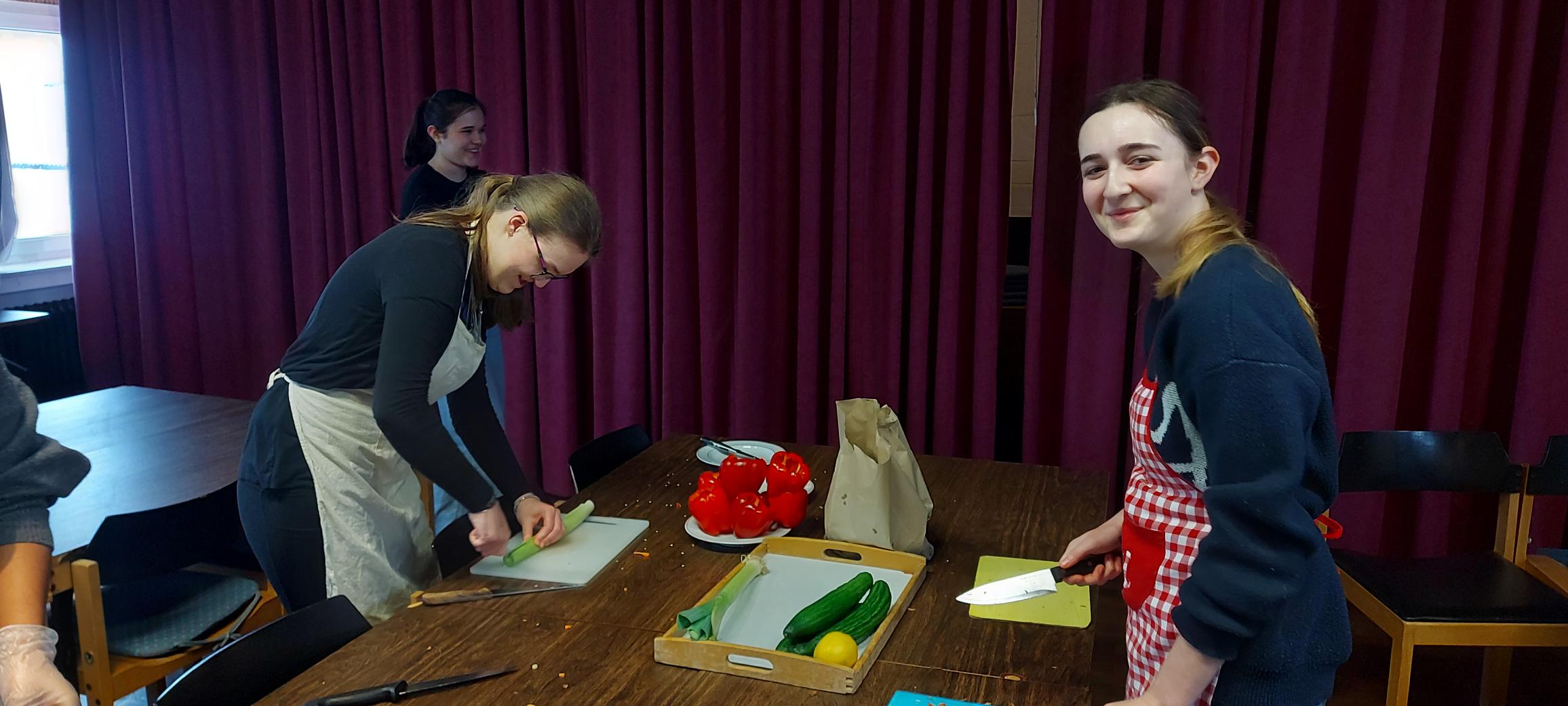 Jetzt hieß es kreativ sein, schließlich sollten die Lebensmittel gerettet werden und daraus ein leckeres Mittagessen entstehen. Es wurden Lebensmittel hin- und her sortiert, Rezeptideen diskutiert und liebevoll Gemüse geschnippelt.