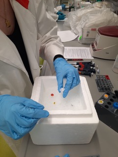 Zuvor bekamen die Schüler und Schülerinnen eine Sicherheitseinweisung, eine Einführung zu den Gerätschaften und zu dem Versuchsablauf, denn es galt: je sauberer und ordentlicher man arbeitet, umso besser sieht man das Ergebnis, nämlich seine eigene DNA! – Unglaublich, was man nur mit wenigen Mundschleimhautzellen anstellen kann.