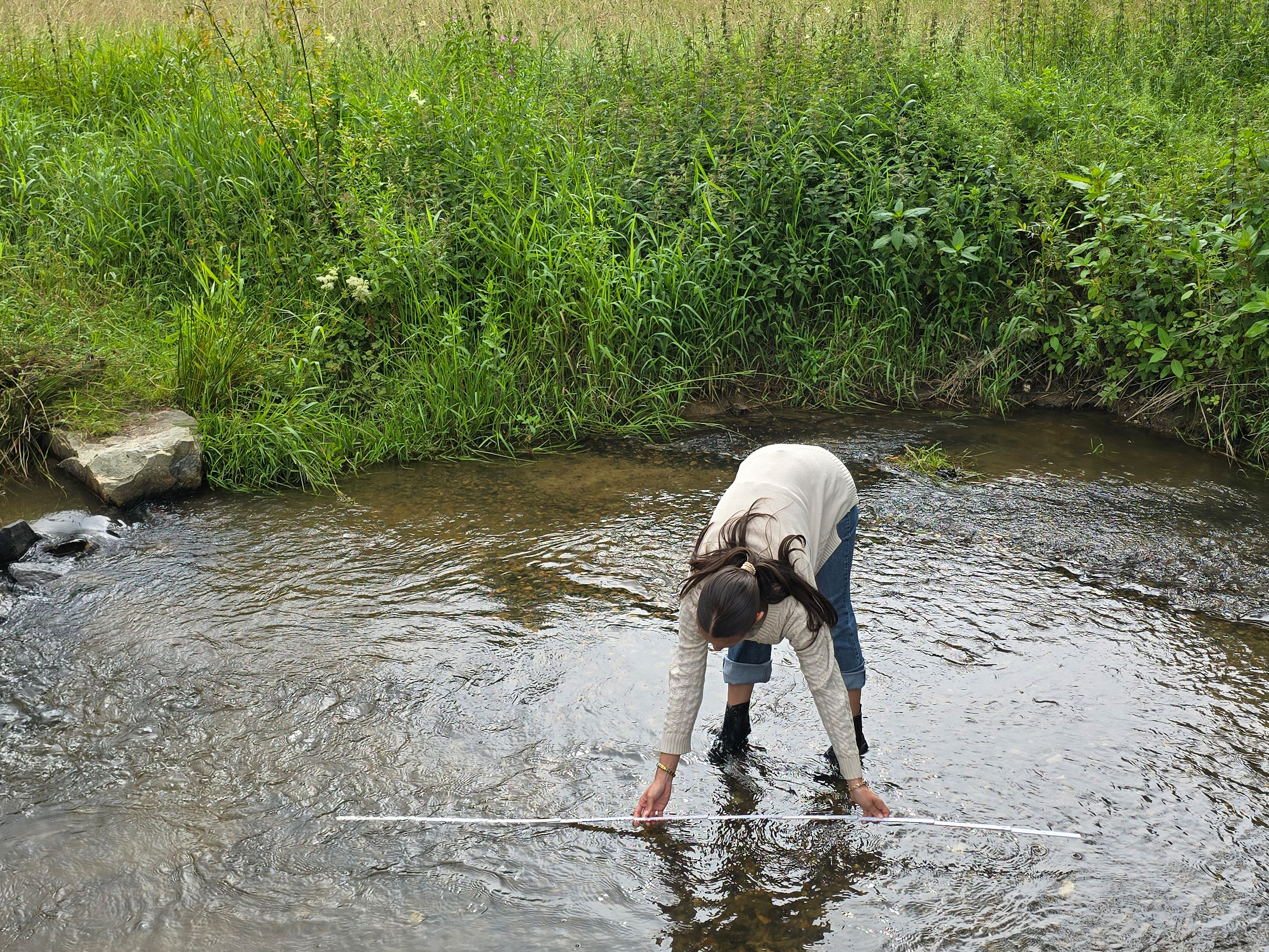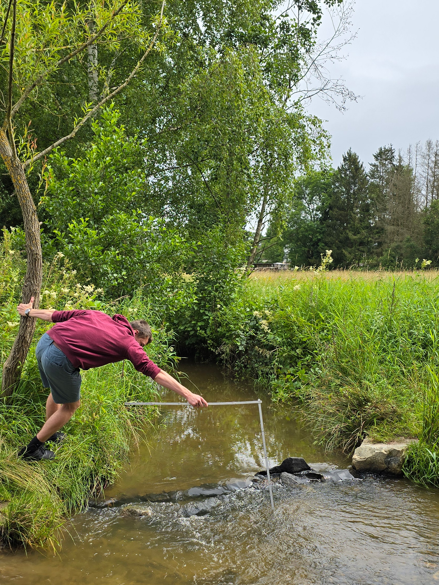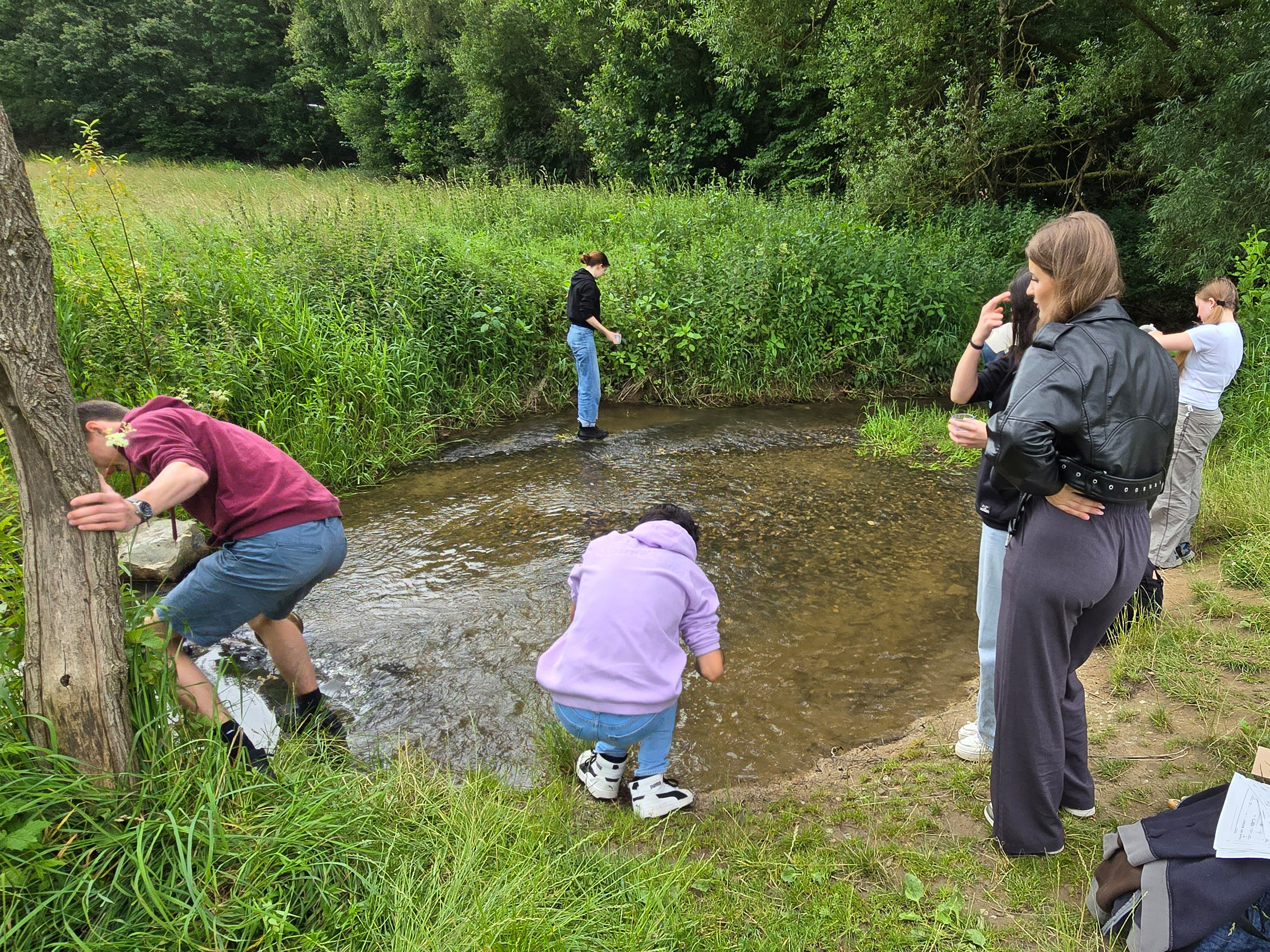 Laut Lehrplan sollen sich die Schüler der Oberstufe mit dem Ökosystem Fließgewässer beschäftigen. Damit dies nicht ausschließlich mit Arbeitsblättern und Filmen geschieht, zog es den Bio LK heute an das heimische Fließgewässer, die Aar. Bei gutem Wetter wanderten wir von der Schule bis zum Spielplatz im Aartal. Von dort war es nicht weit bis zu einer günstigen Stelle an der Aar. Neben physikalischen und chemischen Parametern, wie Fließgeschwindigkeit (ca. 0,4m/s) und pH-Wert (ca. 4,5), waren es vor allem die sogenannten Saprobien, die uns interessierten, also die Kleinstlebewesen. An der untersuchten Stelle fanden wir unglaublich viele Flohkrebse, einige Eintagsfliegen-Larven, einen Flusskrebs und einen nicht näher bestimmbaren Wurm. Insgesamt waren wir überrascht, wie viele Kleinstlebewesen wir am Grund der Aar aufspüren konnten. Vergleicht man die gefundenen Tiere mit den entsprechenden Tabellen der Güteklassebestimmung, dann können wir dem untersuchten Teilstück der Aar eine gute Gewässerklasse bescheinigen, und zwar Klasse 2.