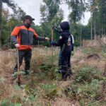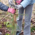 Gemeinsam mit den städtischen Forstwirten und dem Revierförster haben unsere Schüler*innen in dem von Hitze, Trockenheit und Schädlingsbefall gebeutelten Taunussteiner Wald einen Vormittag verbracht. Auf einem Stück ehemaligen Fichtenwaldes haben sie junge Wildlinge unterschiedlicher Baumarten bestimmt, mit Stäben markiert und anschließend angebunden, sodass sie vor Verbiss und Fegen (Reiben der Geweihe an den Pflanzen) geschützt sind. Zusätzlich haben die Schüler*innen die Wildlinge von störender Begleitvegetation befreit. Sie halfen damit einen kleinen Dauerwald zu gestalten, „reich strukturiert, stabil, vorratsreich, standortangepasst“ (https://www.klimaanpassung-wald.de/hintergrund). Des Weiteren lernten sie viel über die in unseren Wäldern heimischen Gehölze und ihre Bedürfnisse.
