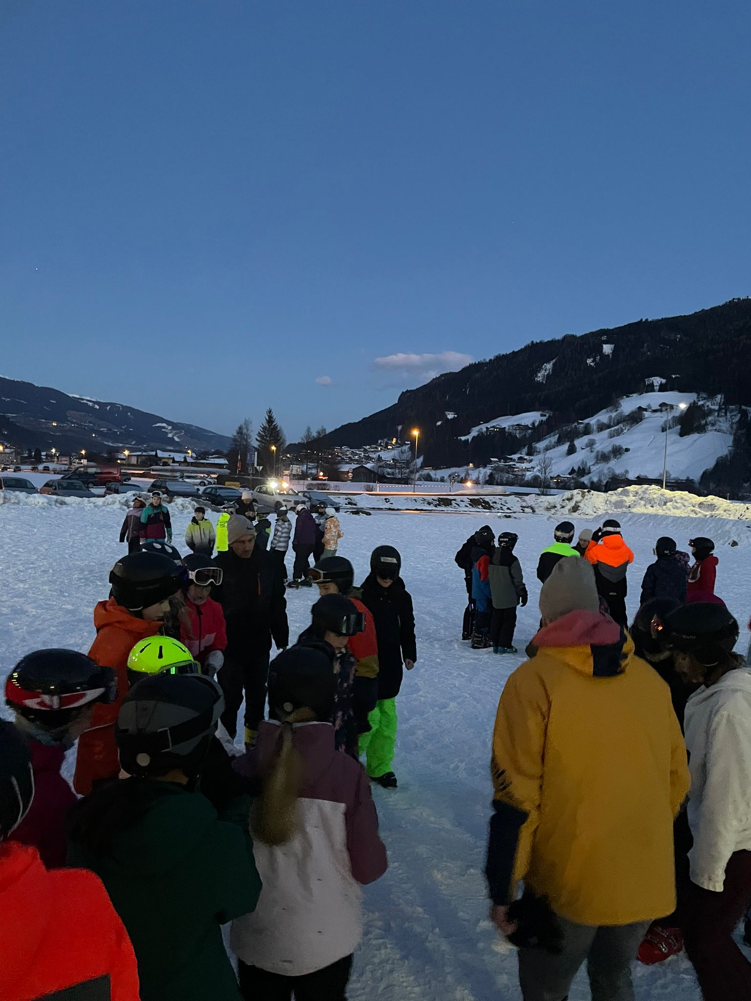 Kurz vor 9 Uhr sind wir, die Klassen 7a und 7e, sicher in Bramberg angekommen. Alle waren sehr müde, trotzdem freuten wir uns endlich da zu sein. Nachdem uns der Hotelleiter Regeln und Vorschriften erklärte, haben wir uns auf den Weg zur Skiausleihe gemacht. Als jeder sein Material hatte, wartete eine heiße Suppe im Hotel auf uns.