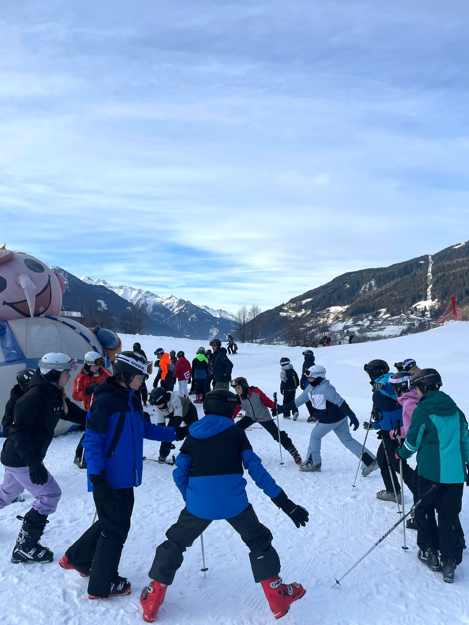 Heute war unser erster Tag auf Skiern. Am Morgen haben wir uns Lunchpakete gemacht und sind auf die Piste gefahren. Oben auf der Piste haben wir uns eingefahren und die Anfänger sind mit dem Skibus auf den Wennser-Gletscher gefahren; so nennt man den Anfängerhügel. Dort wurde gelernt wie man bremst und wie man Kurven fährt. Zu Mittag sind wir auf die Wolkensteinhütte gegangen und haben eine leckere Suppe gegessen, um uns zu stärken.