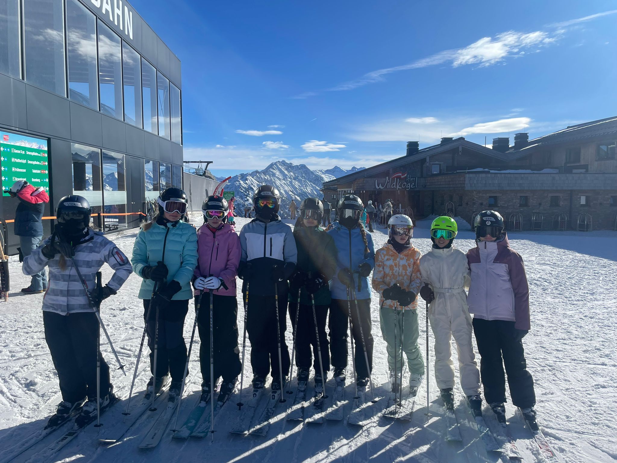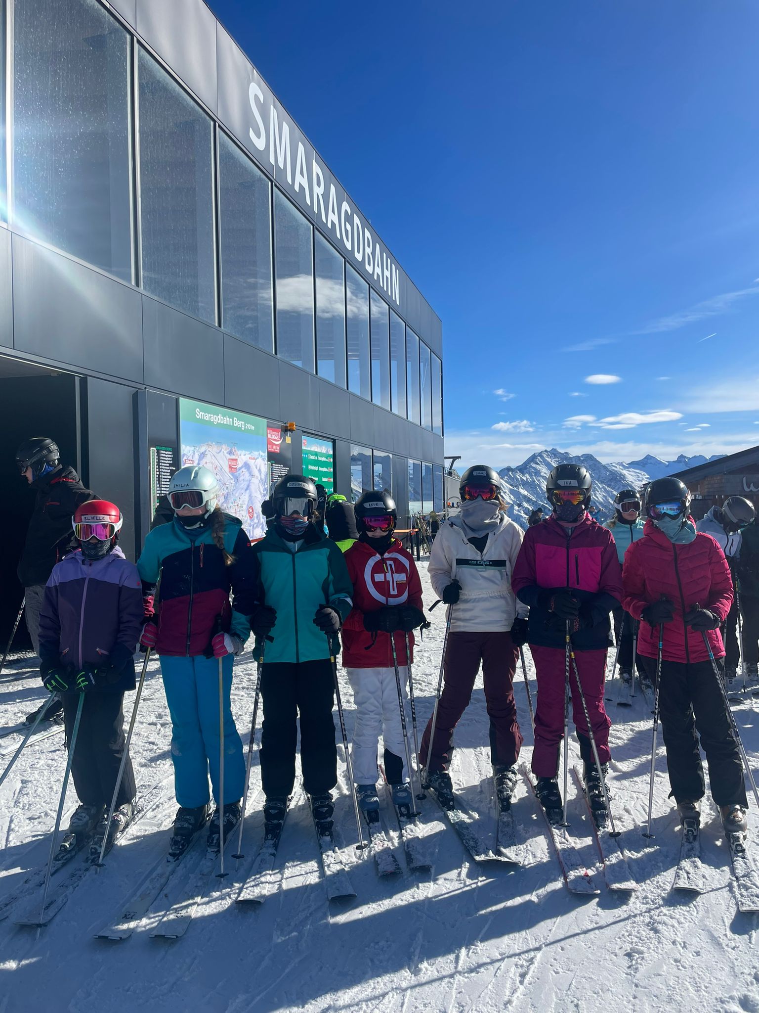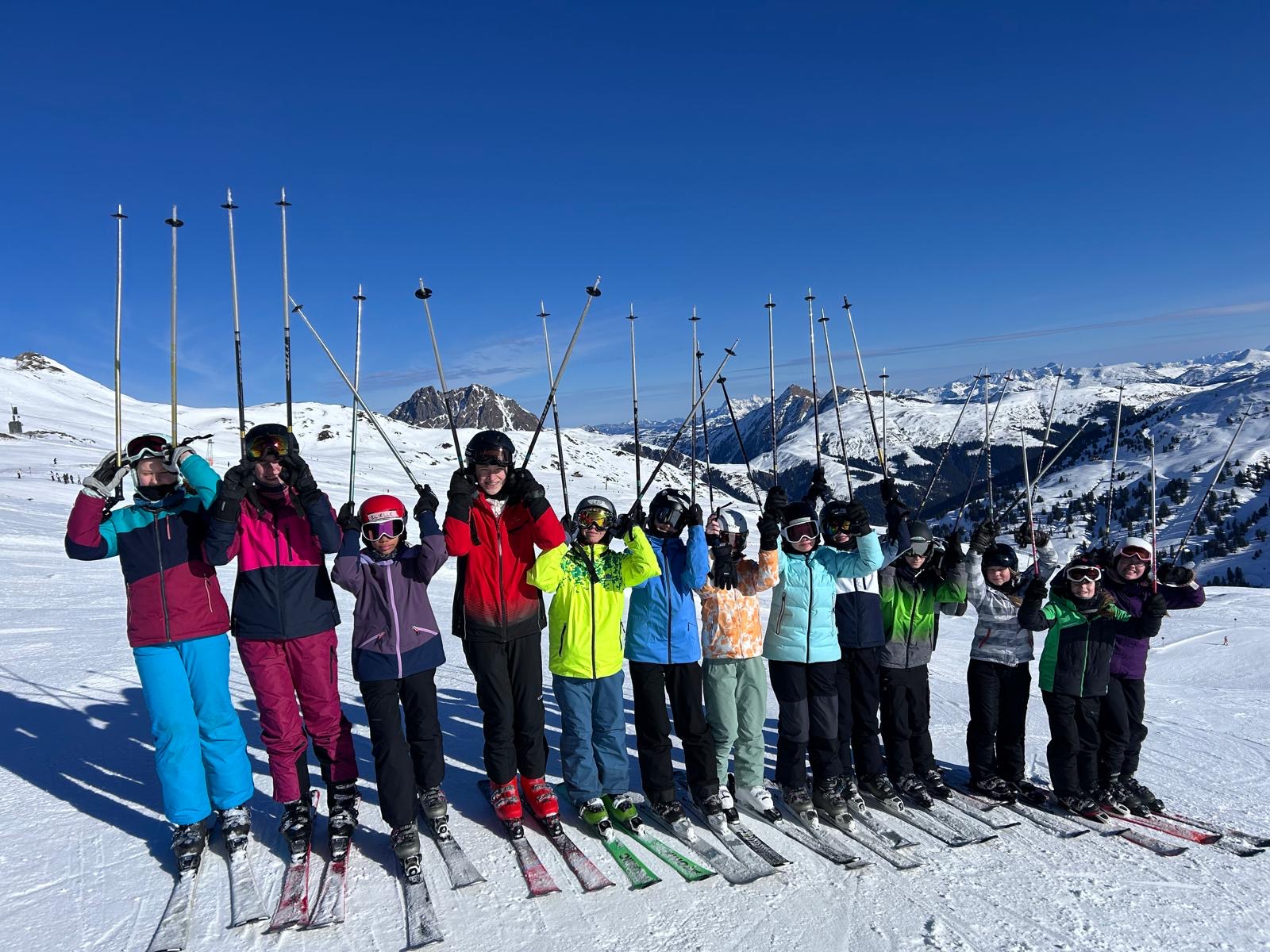Der Tag begann, indem wir um 7:20 Uhr zusammen lecker gefrühstückt haben. Anschließend sind alle Gruppen mit der Smaragd-Bahn hoch auf den 2100 Meter gefahren. Dann sind wir nach dem gemeinsamen tänzerischen Warm-up bis zur Mittagspause in unseren Gruppen gefahren. Dabei sind die Anfänger eine rote Piste und die Fortgeschrittenen und Könner zwei schwarze Pisten gefahren. Nach der erholsamen Mittagspause durften alle in ihren Wunschgruppen die Piste „5a Autobahn“ fahren. Anschließend sind alle wieder zurückgegondelt, um das Skimaterial abzugeben. Im Hotel angekommen, hatten wir freie Zeit, um im Dorf in einen Supermarkt zu gehen, wo man sich Verpflegung für die Busfahrt kaufen konnte. Anschließend gab es ein super leckeres Abendessen mit Curry und Kaiserschmarrn.