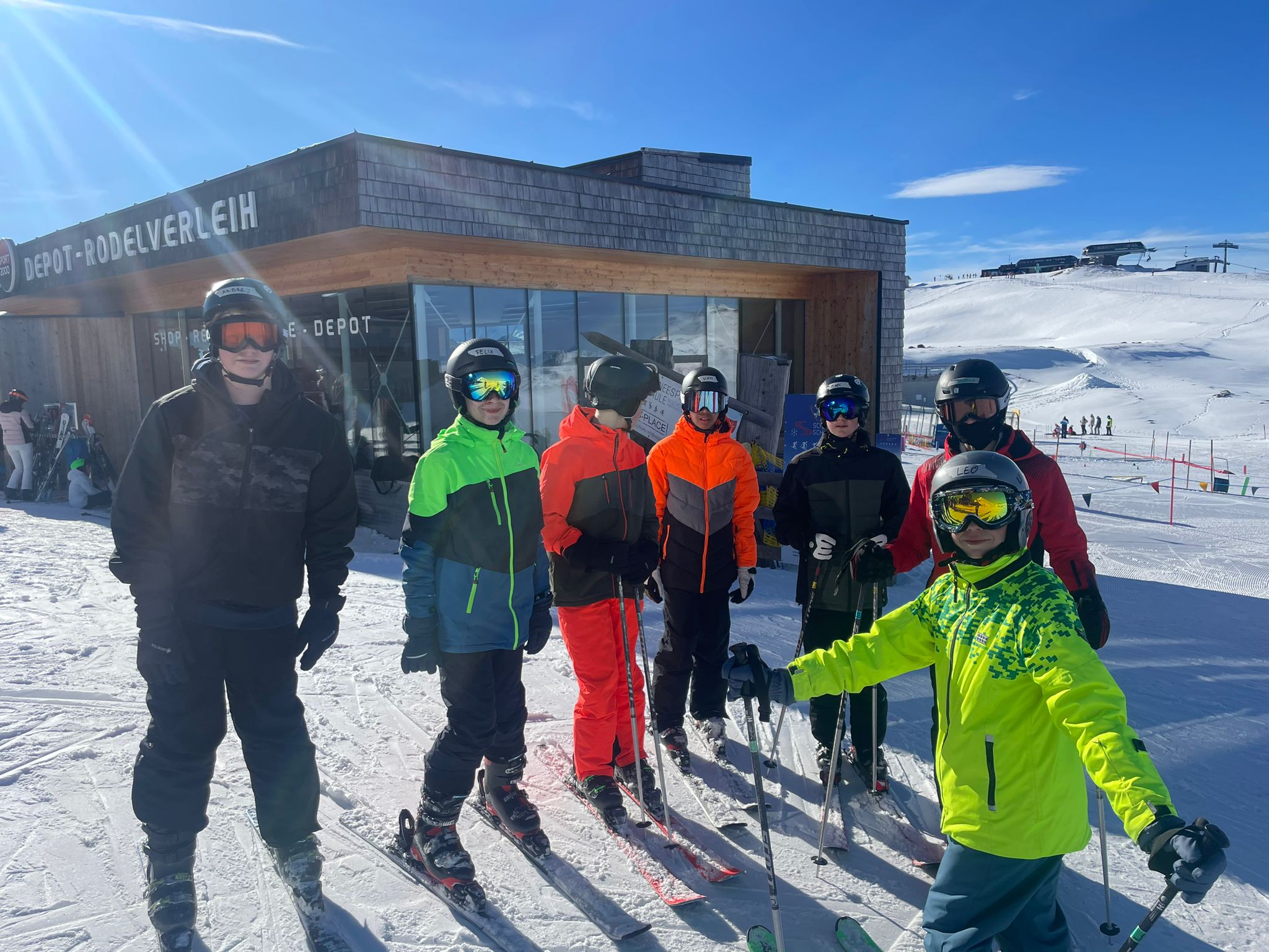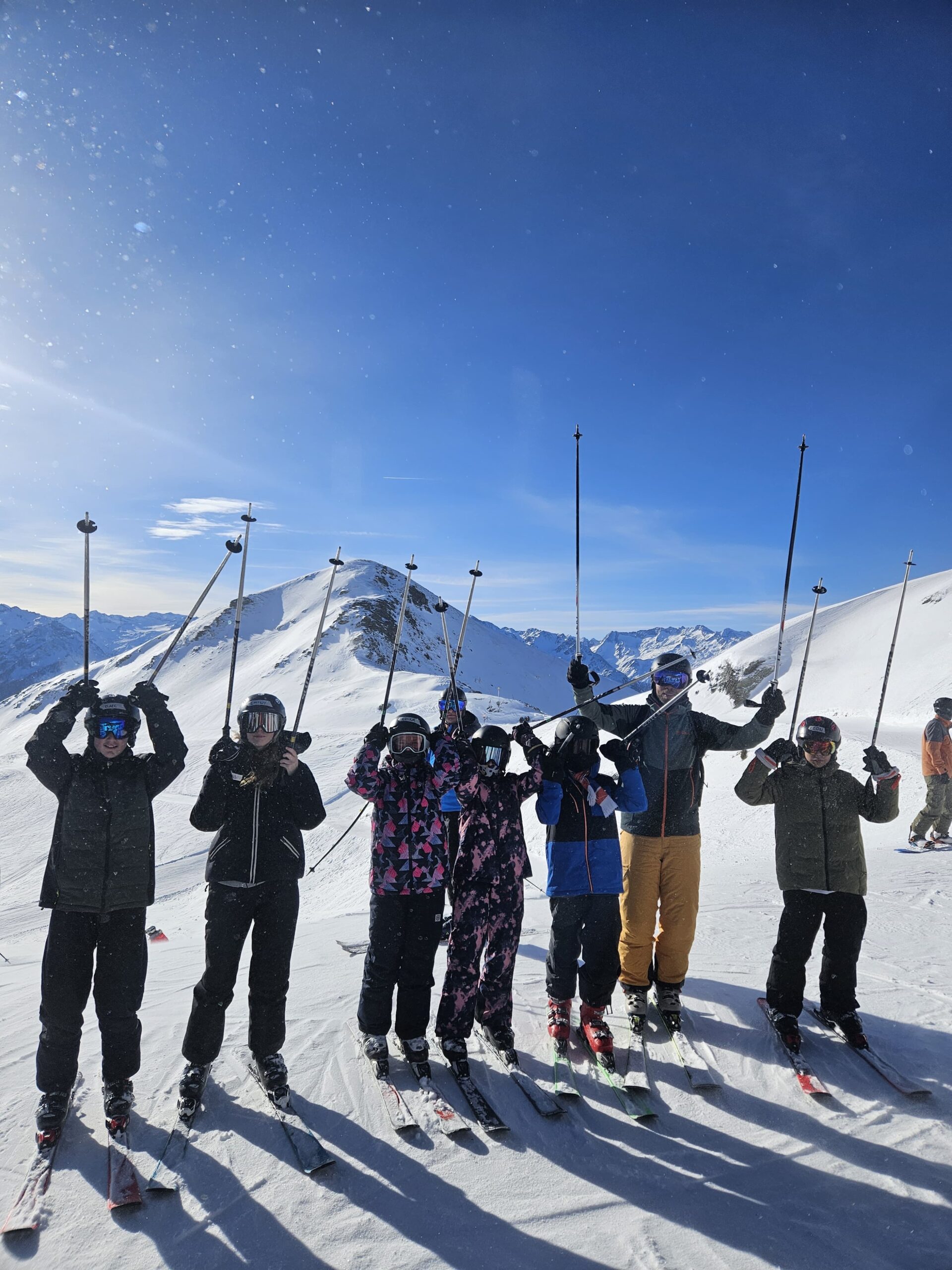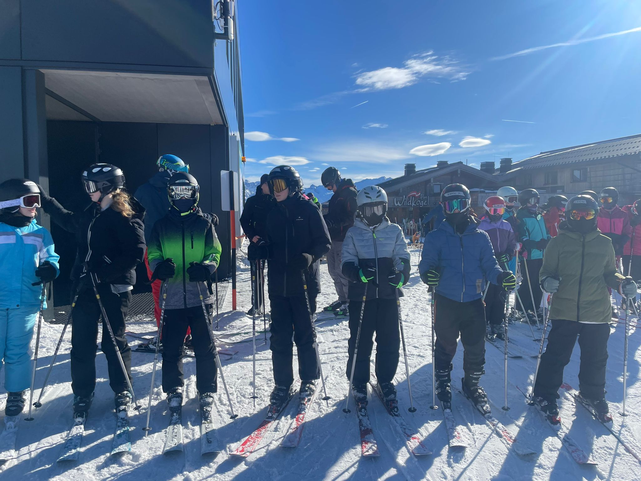 Der Tag begann, indem wir um 7:20 Uhr zusammen lecker gefrühstückt haben. Anschließend sind alle Gruppen mit der Smaragd-Bahn hoch auf den 2100 Meter gefahren. Dann sind wir nach dem gemeinsamen tänzerischen Warm-up bis zur Mittagspause in unseren Gruppen gefahren. Dabei sind die Anfänger eine rote Piste und die Fortgeschrittenen und Könner zwei schwarze Pisten gefahren. Nach der erholsamen Mittagspause durften alle in ihren Wunschgruppen die Piste „5a Autobahn“ fahren. Anschließend sind alle wieder zurückgegondelt, um das Skimaterial abzugeben. Im Hotel angekommen, hatten wir freie Zeit, um im Dorf in einen Supermarkt zu gehen, wo man sich Verpflegung für die Busfahrt kaufen konnte. Anschließend gab es ein super leckeres Abendessen mit Curry und Kaiserschmarrn.